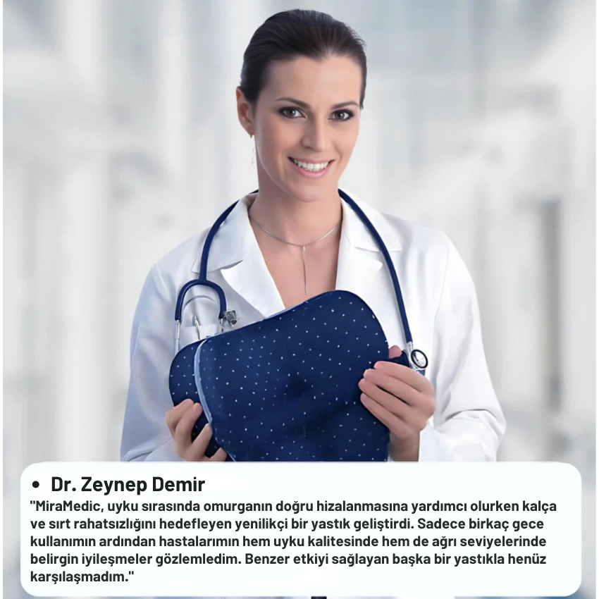 MiraMedic™️ Ortopedik Yastığı bacaklarınızın arasına yerleştirmek , boyun omurgasını desteklemek ve nefes almasına, onarılmasına ve yeniden hizalanmasına yardımcı olmak için bilimsel olarak kanıtlanmış özellikleriyle rahatsızlığınızın temel nedenini ortadan kaldırır .